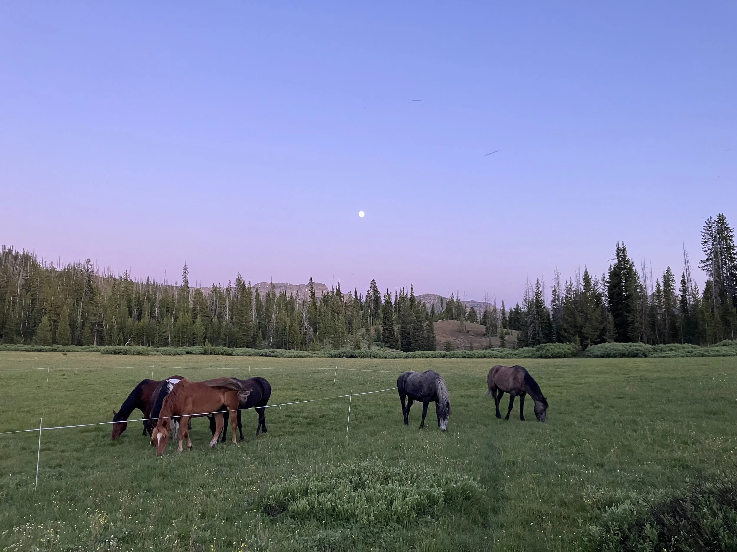 What a big week for Spot! He got shoes, had his first obstacle practice, and went to work. I stood up on Spot for the first time, and we traveled to Meeker together for the Back on Track clinic. Phew! Riding with Jim Hicks last week helped me start to develop a feel with Spot. He’s getting softer and softer through the bridle, I can increasingly put him exactly where I want him, and he’s happily jumping over barrels and cantering over tarps! Spot and I rode in the mountains together on Thursday to deliver food to a NOLS course in the Wind River Range, and this little horse — whether packing or riding — never put a foot wrong. I feel so lucky to spend the summer with this special mustang!