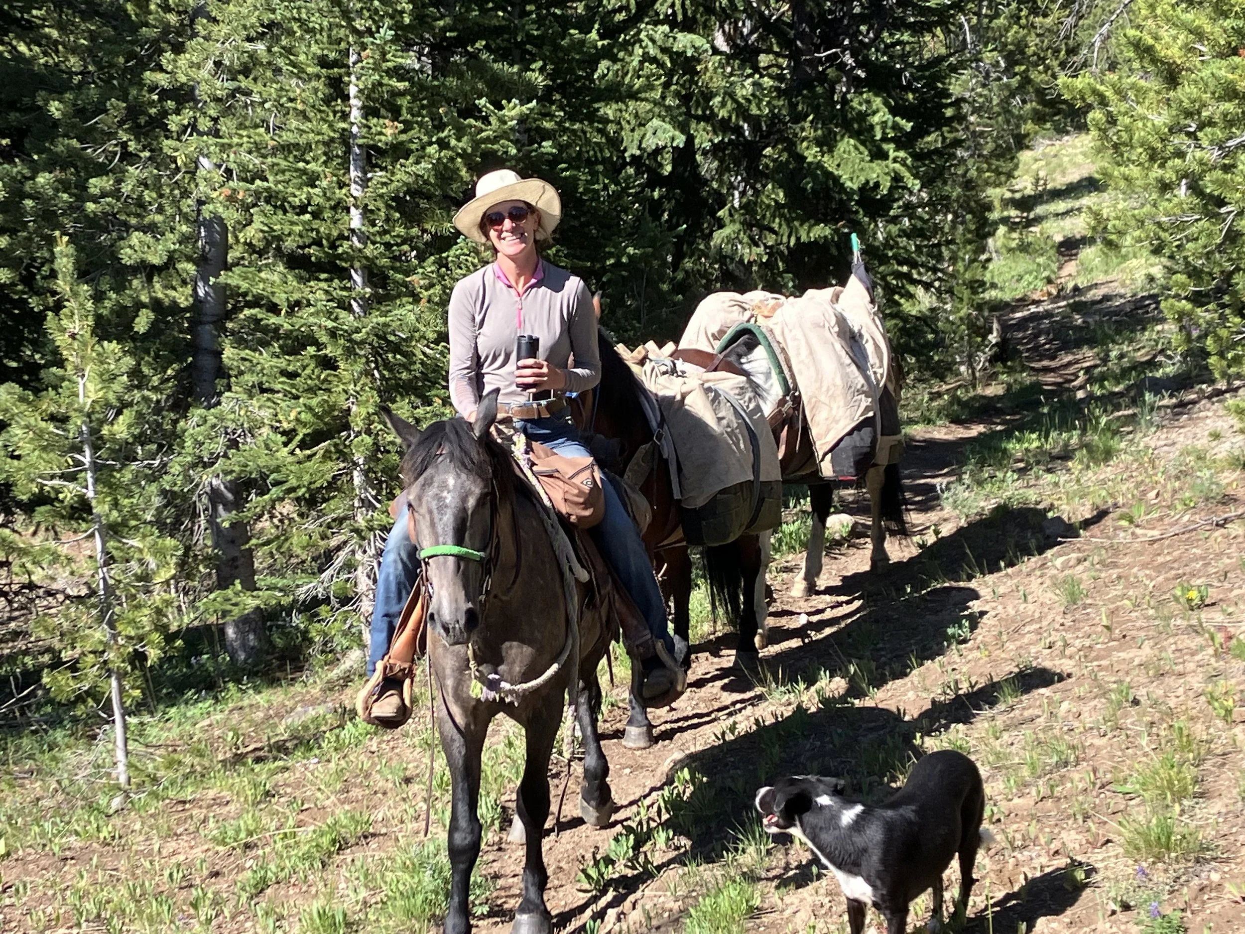 In early July, Spot and I travelled deep into the Absaroka mountains to deliver supplies to a NOLS backpacking expedition. We rode with a friend and 5 other horses to a beautiful camp halfway between Hawks Rest (the most remote place in the lower 48) and the trailhead. From our camp, we covered 15 more miles and crossed the Yellowstone River to meet the course a little over a week in to their month-long trip. Students and instructors were happy for food and were excited to meet the Rainbow Ranch horses! Spot made a lot of new friends!! Once again, I’m so impressed by the confidence, demeanor, and work ethic of this little horse!